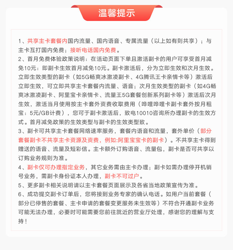 副卡选号: