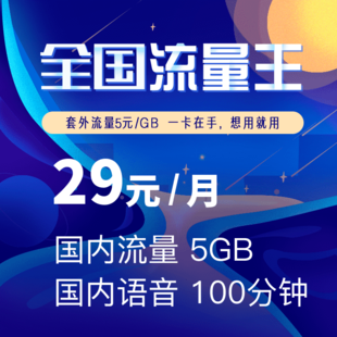 【4G全国流量王】29元/月5GB+100分钟语音