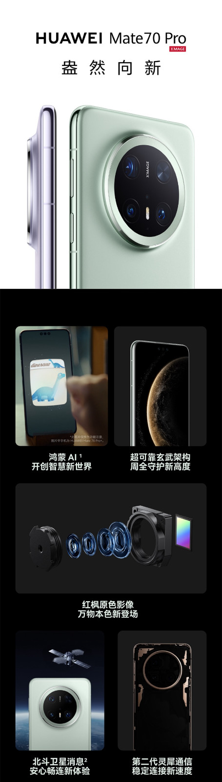 【U享购机直降】华为 Mate 70 Pro 鸿蒙 OS 4.3 北斗卫星消息 灵犀通信 全场景智慧手机
