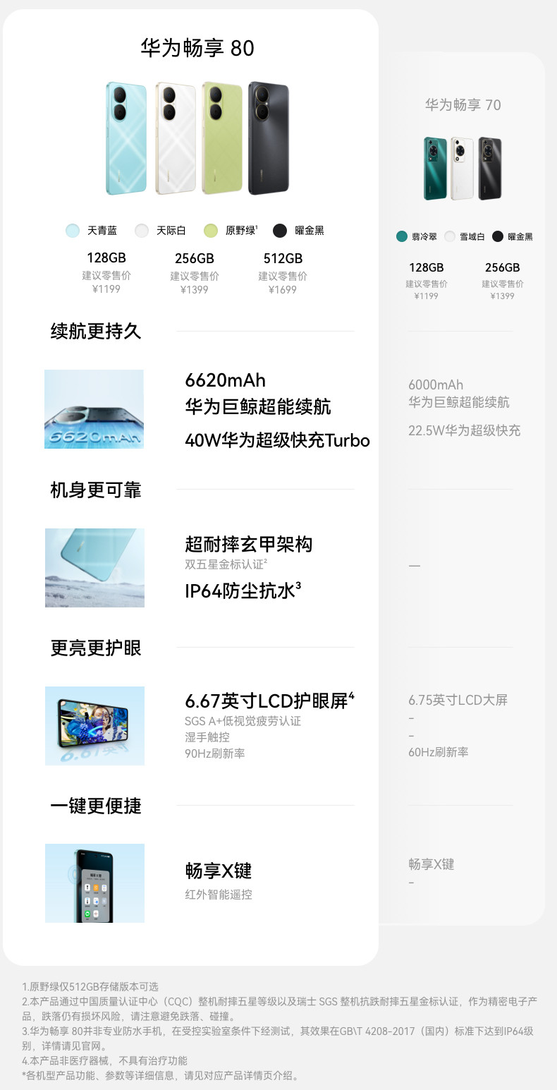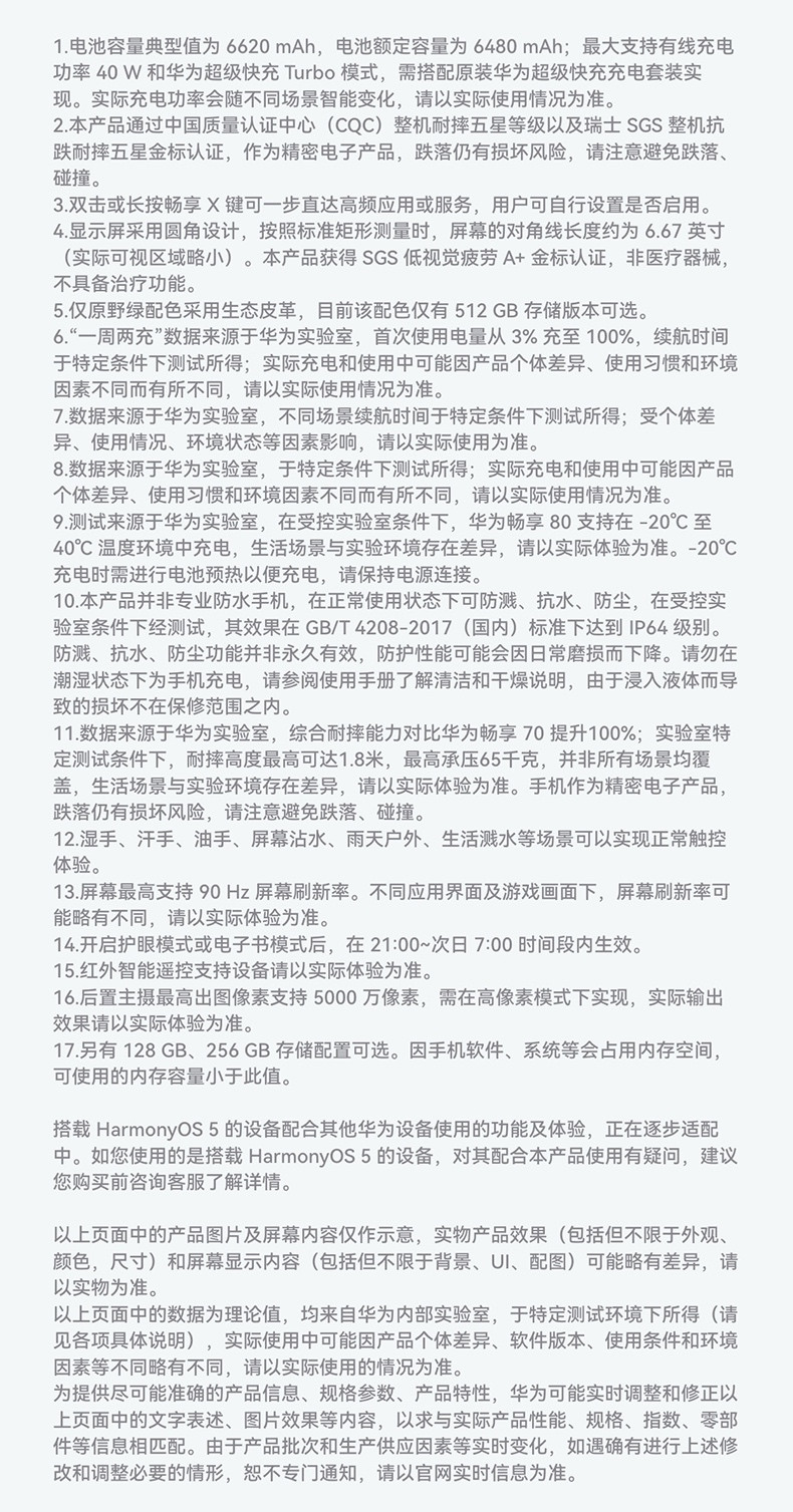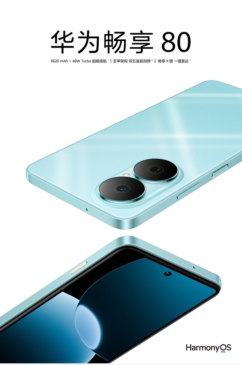 【U享购机直降】华为畅享80 6620mAh电池超能续航 玄甲架构 双五星超耐摔 华为鸿蒙智能手机 护眼