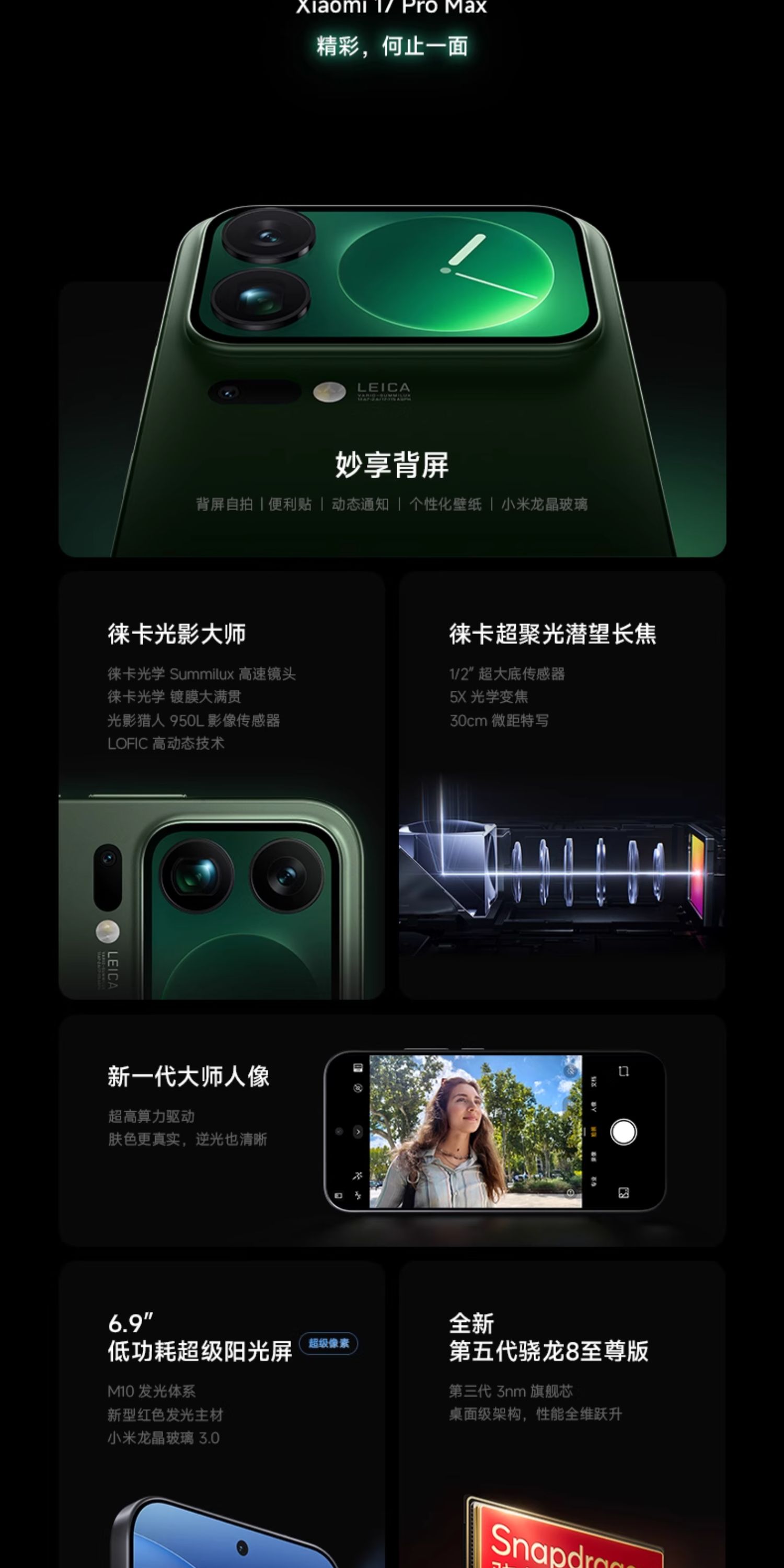 【U享购机直降】小米(MI)17 Pro Max 妙享背屏 第五代骁龙8至尊版 7500mAh小米金沙江电池 5G