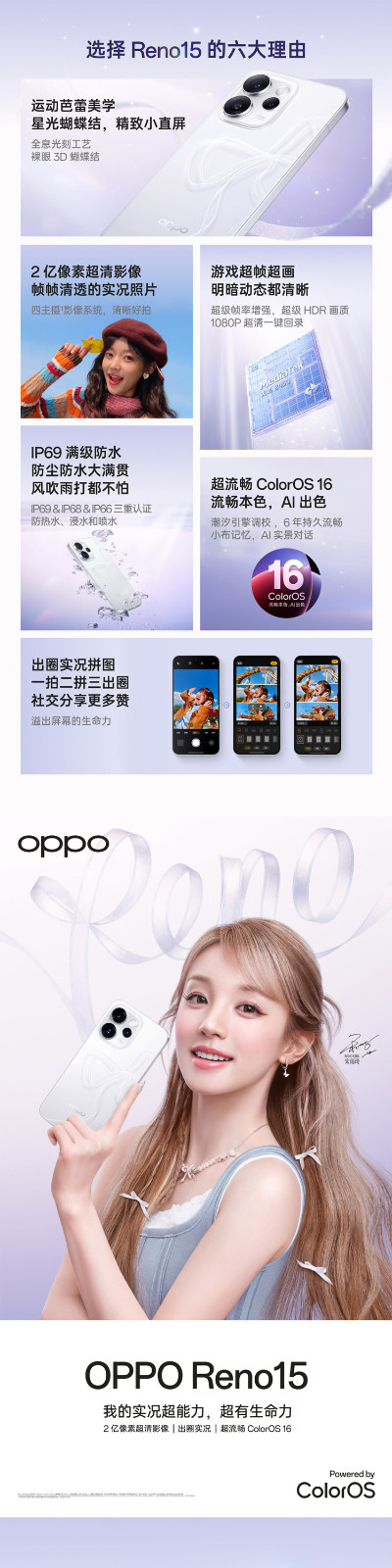 【购机享电子券】OPPO Reno15 2亿像素超清影像 IP69满级防水 超出圈实况