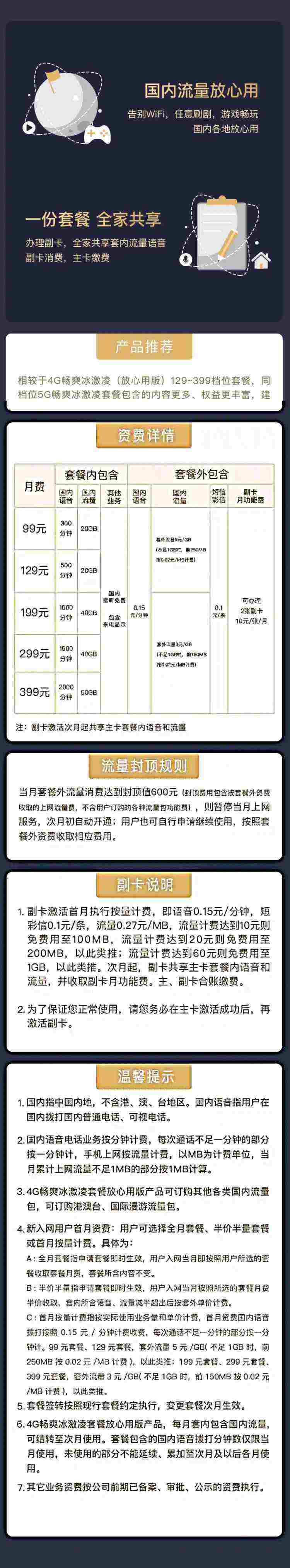 4G畅爽冰激凌国内流量套餐-399元/月(放心用版)