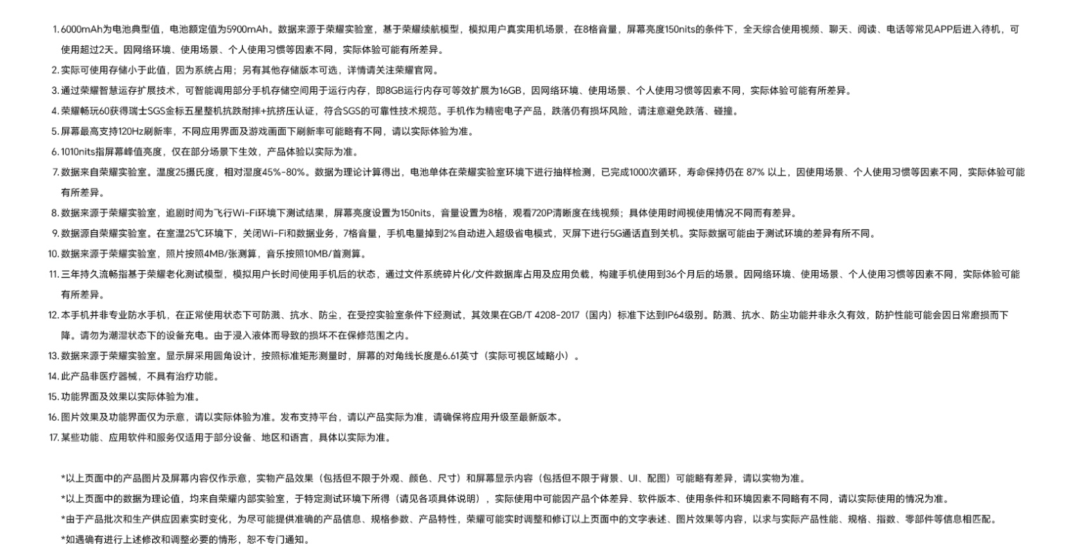 【合约直降】荣耀 畅玩60 (8G+256G)