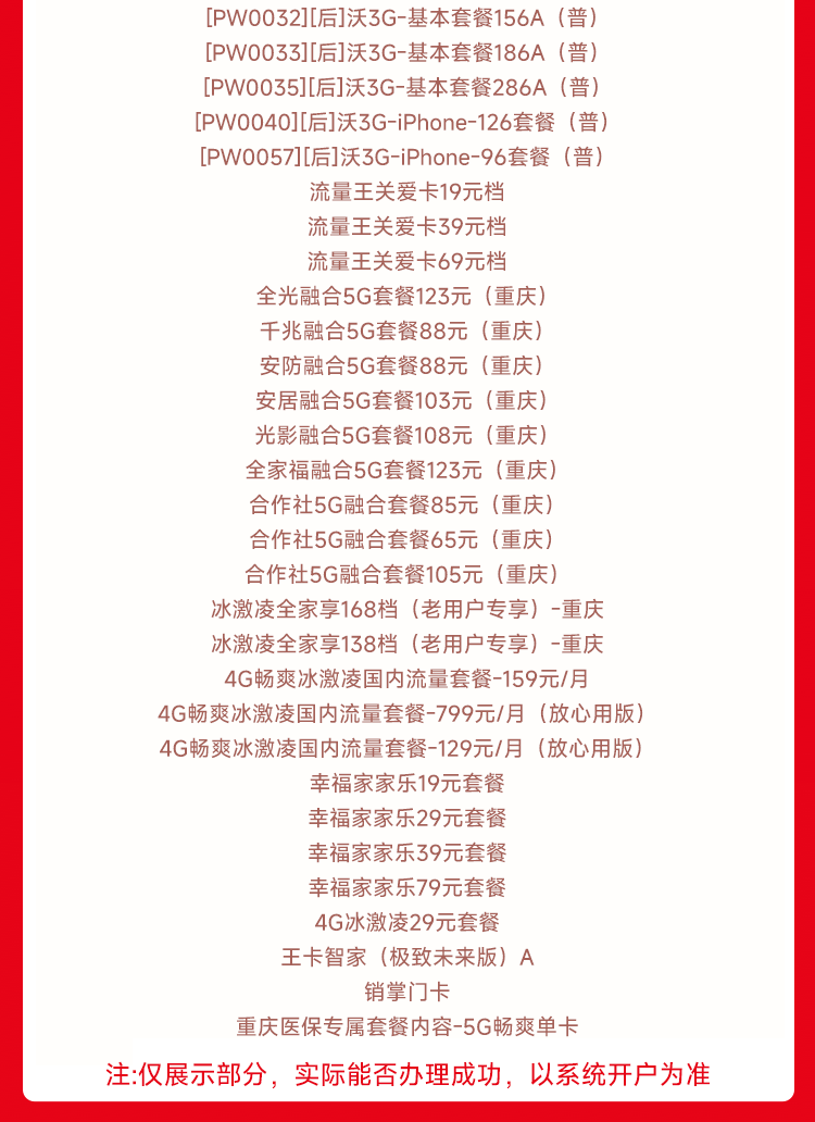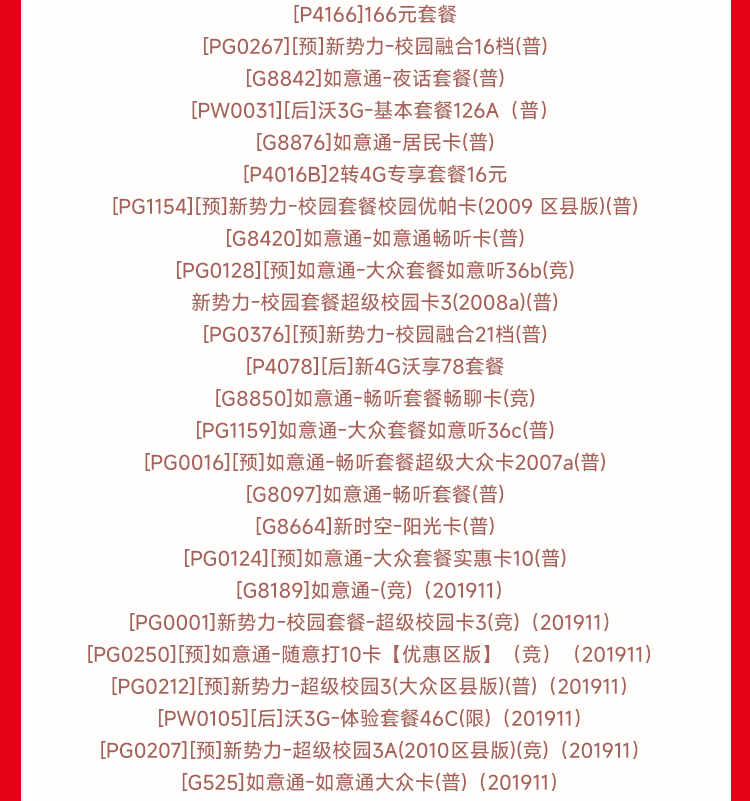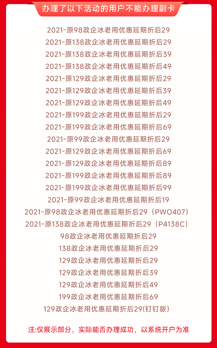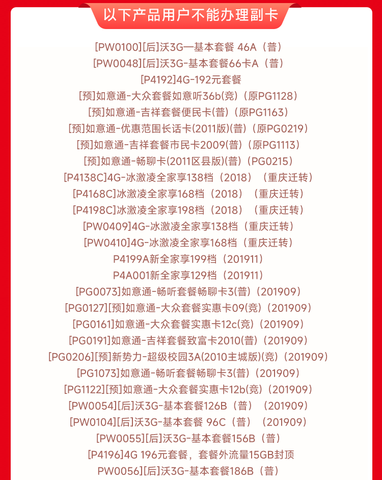 副卡选号: