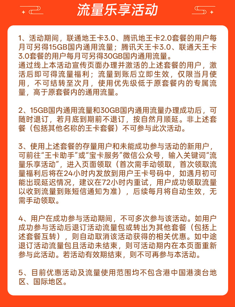 联通天王卡3.0 80GB大流量【商城】
