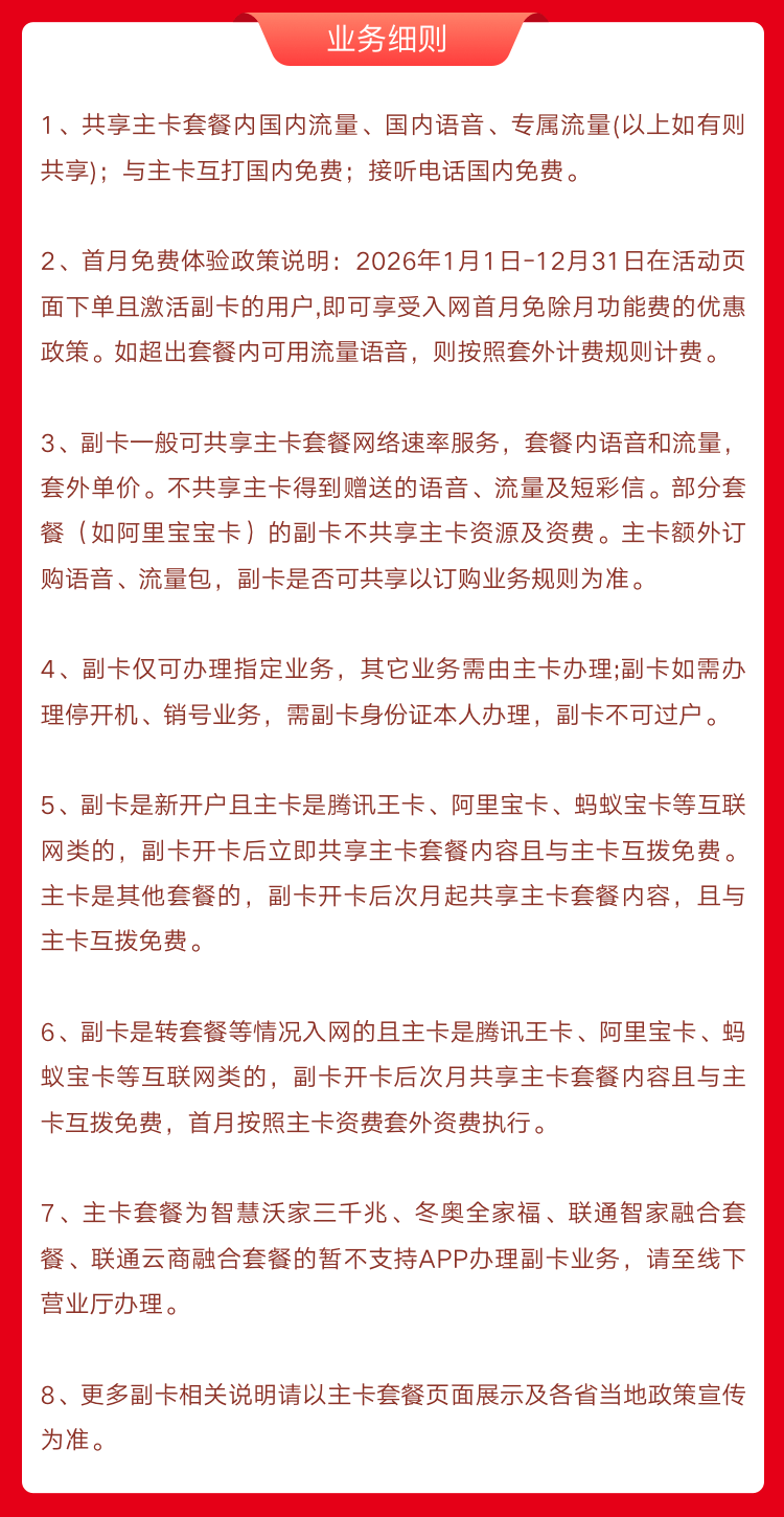 副卡选号: