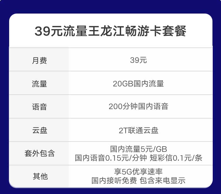 流量王龙江畅游卡39元