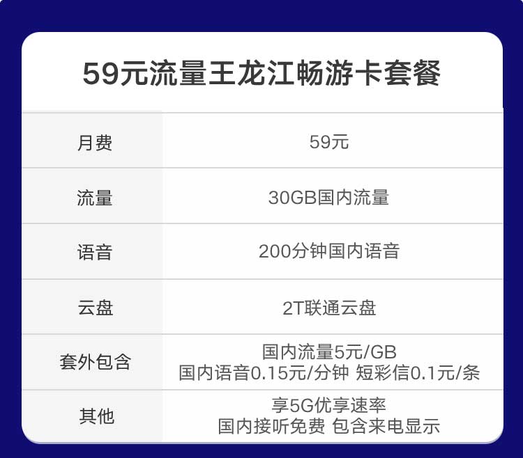 流量王龙江畅游卡59元