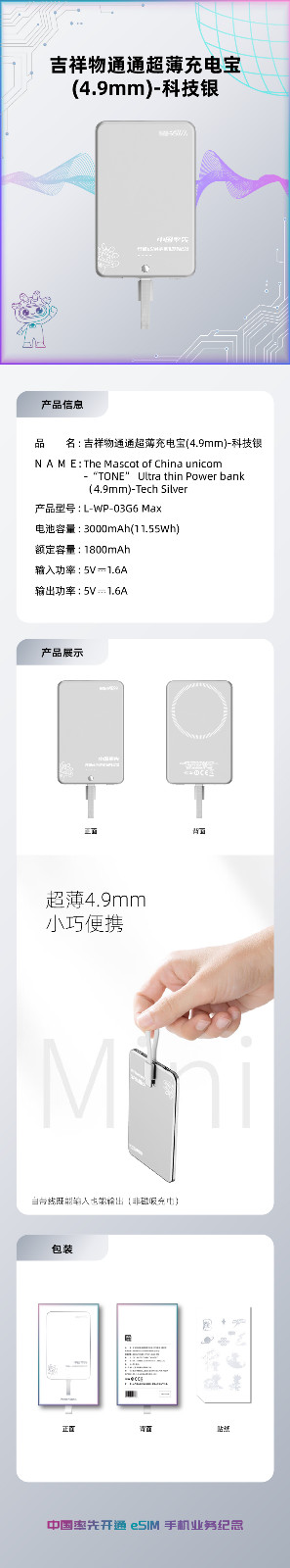 吉祥物通通超薄充电宝(4.9mm)-科技银