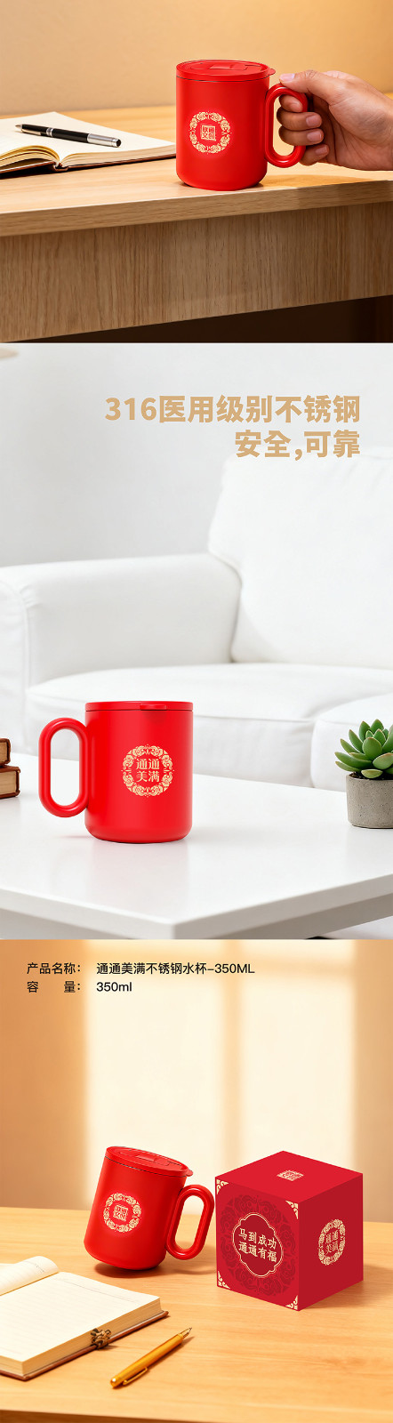 通通美满不锈钢水杯-350ML
