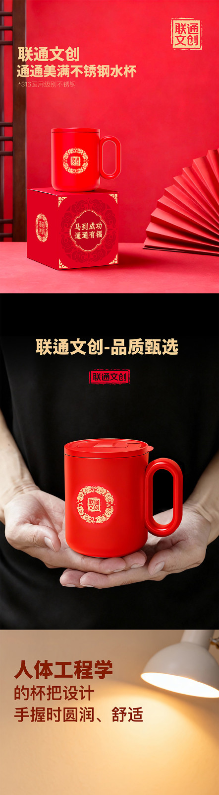 【联通文创】通通美满不锈钢水杯-350ML