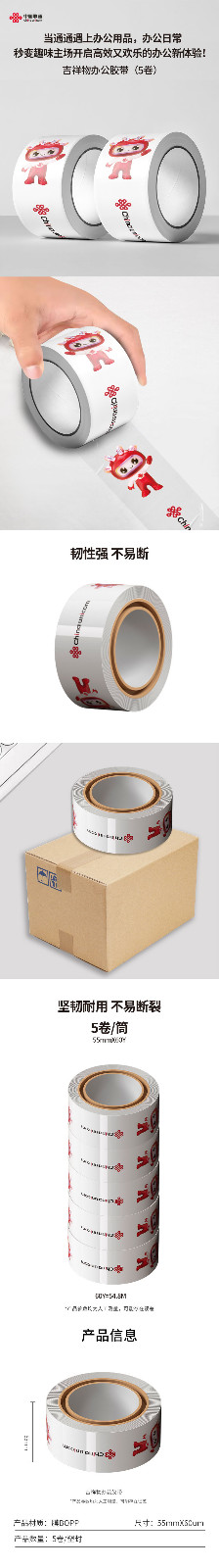3、组合产品:吉祥物办公胶带(5卷)+联通金属签字笔(2支装)