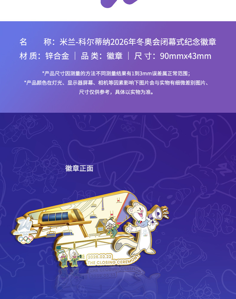 【联通文创】米兰-科尔蒂纳2026年冬奥会闭幕式纪念徽章