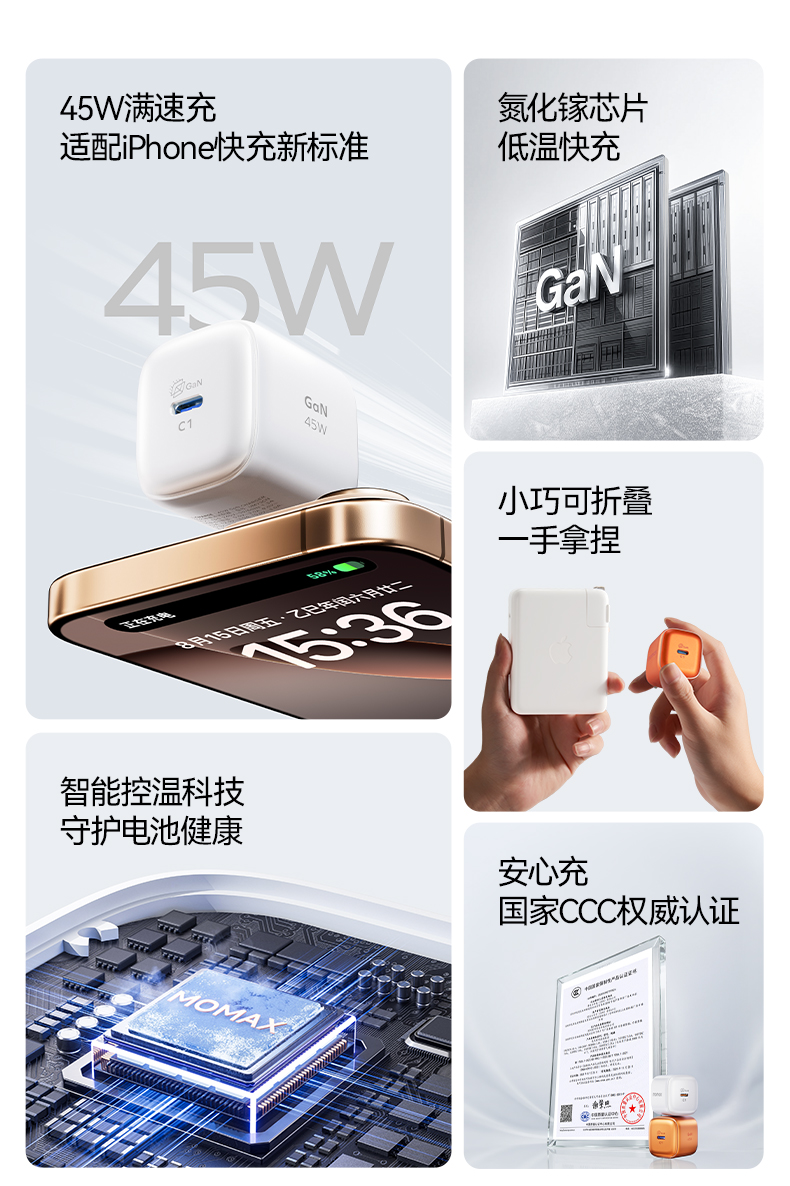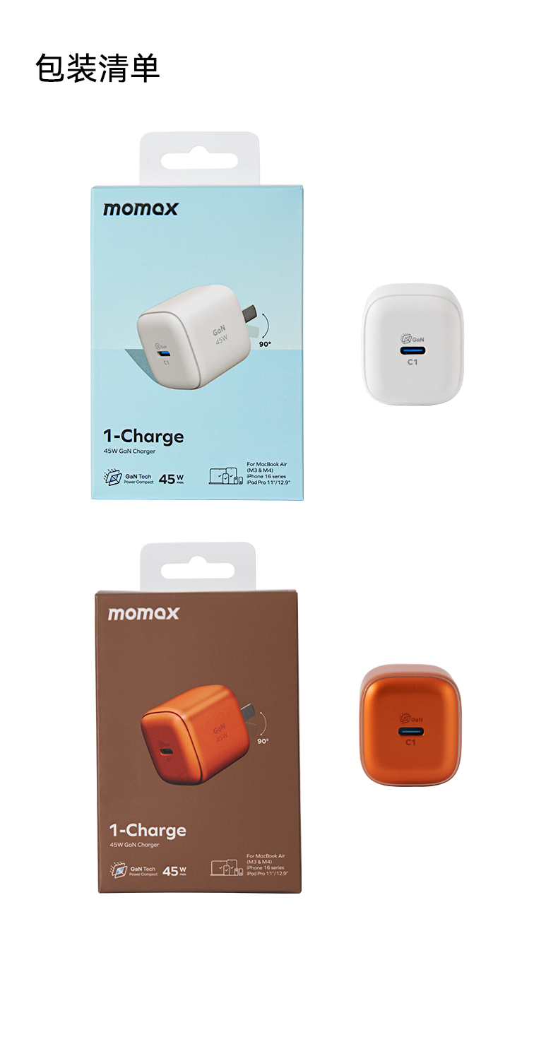 Momax 1-Charge 45W 单C口氮化镓充电器