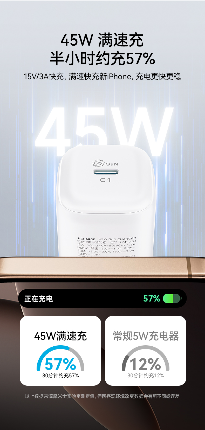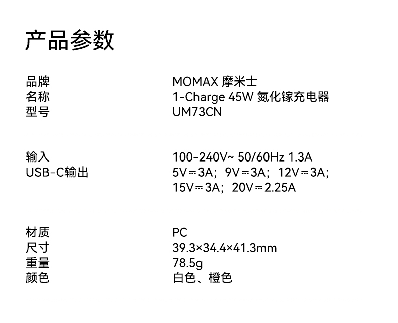 【联通官方】摩米士Momax 1-Charge 45W 单C口氮化镓充电器